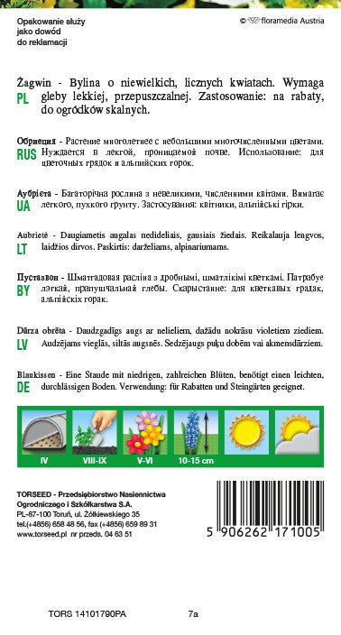 (Aubrieta cultorum hybrida)Bylina o niewielkich, licznych kwiatach. Wymaga gleby lekkiej, przepuszczalnej. Zastosowanie: na rabaty, do ogródków skalnych. Siew: IVPikowanie rozsad: VIII-IXOkres kwitnienia: V-VI