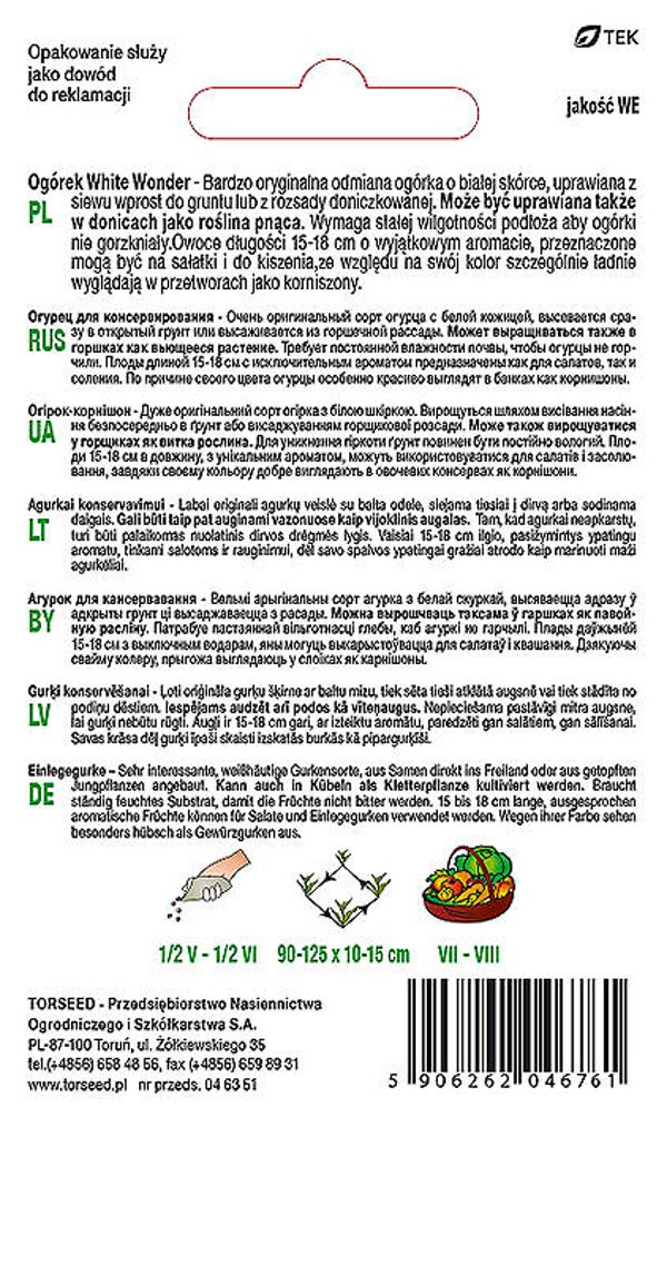 (Cucumis sativus)Bardzo oryginalna odmiana ogórka o białej skórce, uprawiana z siewu wprost do gruntu lub z rozsady doniczkowanej. Może być uprawiana także w donicach, jako roślina pnąca. Wymaga stałej wilgotności podłoża, aby ogórki nie gorzkniały. Owoce długości 15-18 cm o wyjątkowym aromacie, przeznaczone mogą być na sałatki i do kiszenia, ze względu na swój kolor szczególnie ładnie wyglądają w przetworach, jako korniszony.